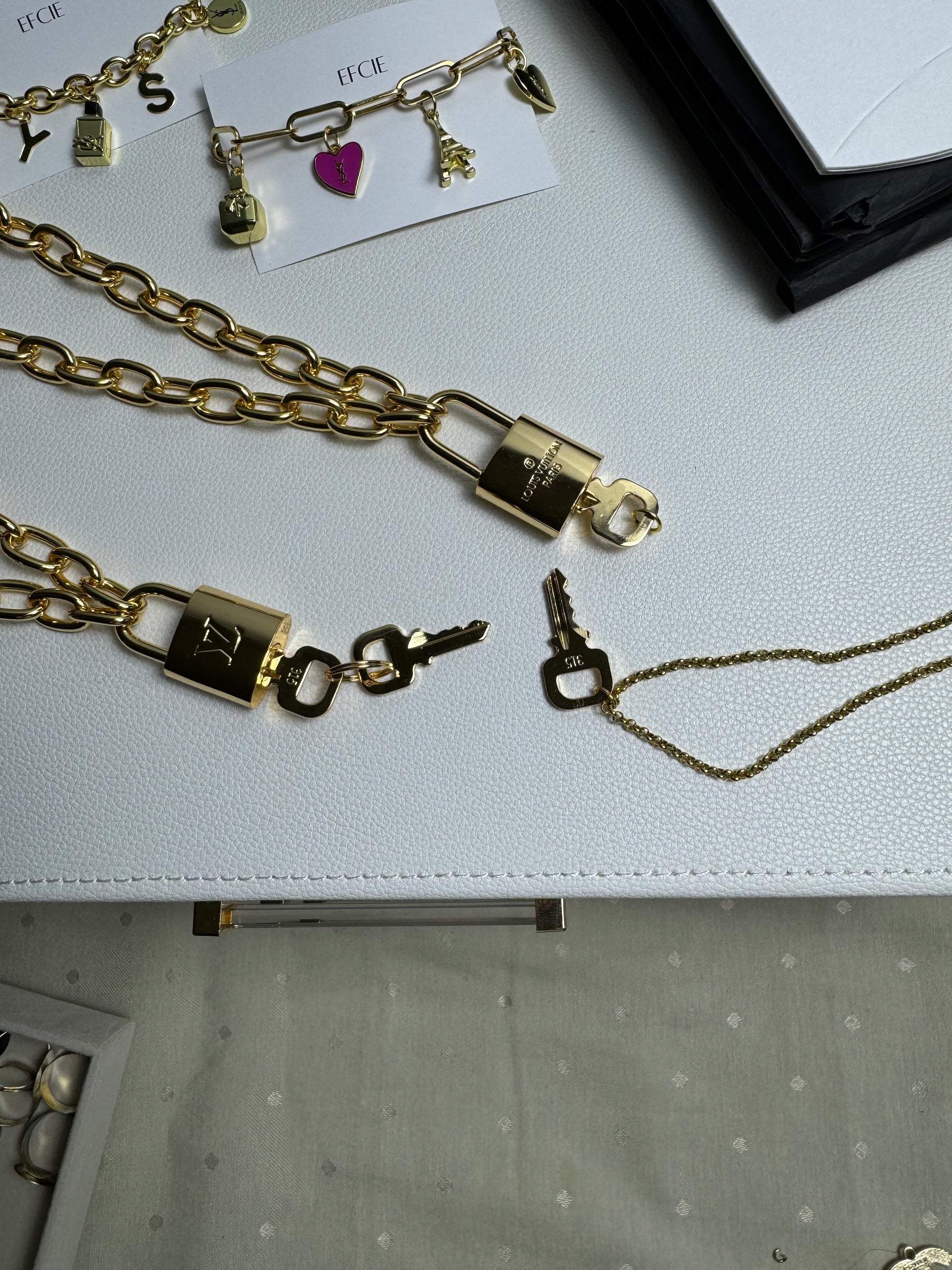This item is handmade using repurposed components from secondhand and vintage designer pieces. Efcie is not affiliated with any brands, and all trademarks remain the property of their respective owners. Due to the nature of repurposed materials, items may show signs of wear or imperfections.